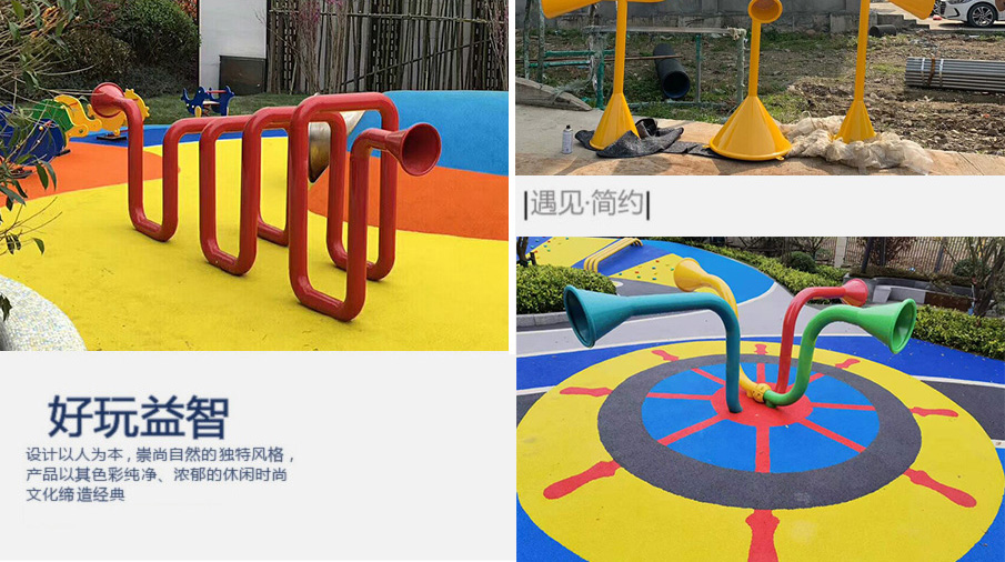 传声筒基本结构是由多个钢管组合而成的,材质有镀锌管和一般钢材。有的厂家整个传声筒采用加厚304不锈钢弯曲成型,焊接将卷压好的钢板用电焊工艺定型,焊点均匀,紧接着就是抛光使产品提亮发光,美观大气,顺滑到底。使用传声筒可以锻炼儿童动手能力和语言表达能力的提高,而传声筒都操作简单也受到了幼儿园、公园、小区的欢迎,传声筒颜色可以定制。