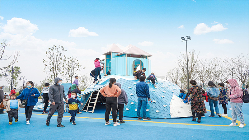 宝藏公园位于儿童主题乐园的中心,大型树形的组合滑梯设备,看起来像是初春的萌动状态,为园区注入了一股蓬勃的生机,让孩子们在玩乐的同时,也能感受到自然的气息。