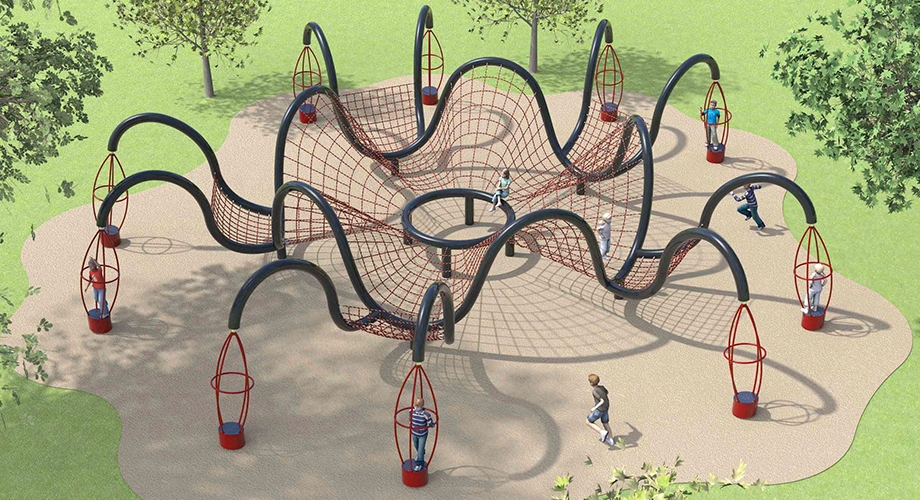 儿童攀爬游乐园是由跳跃云、旱喷广场、漩涡爬网三大元素组成的一处......